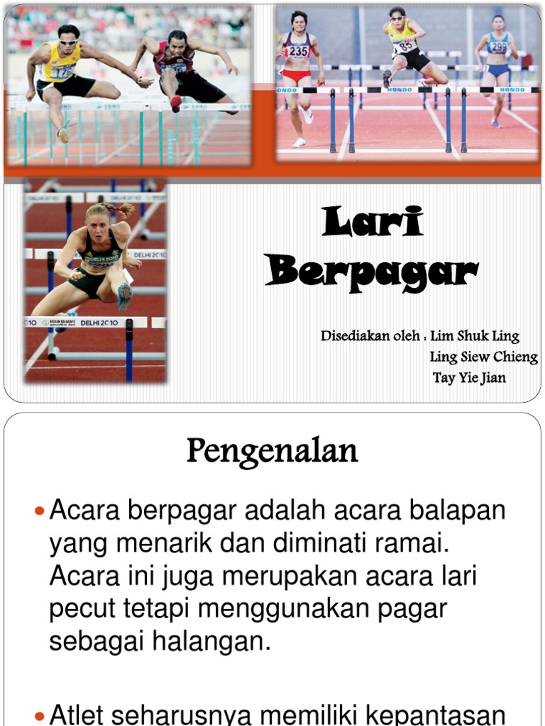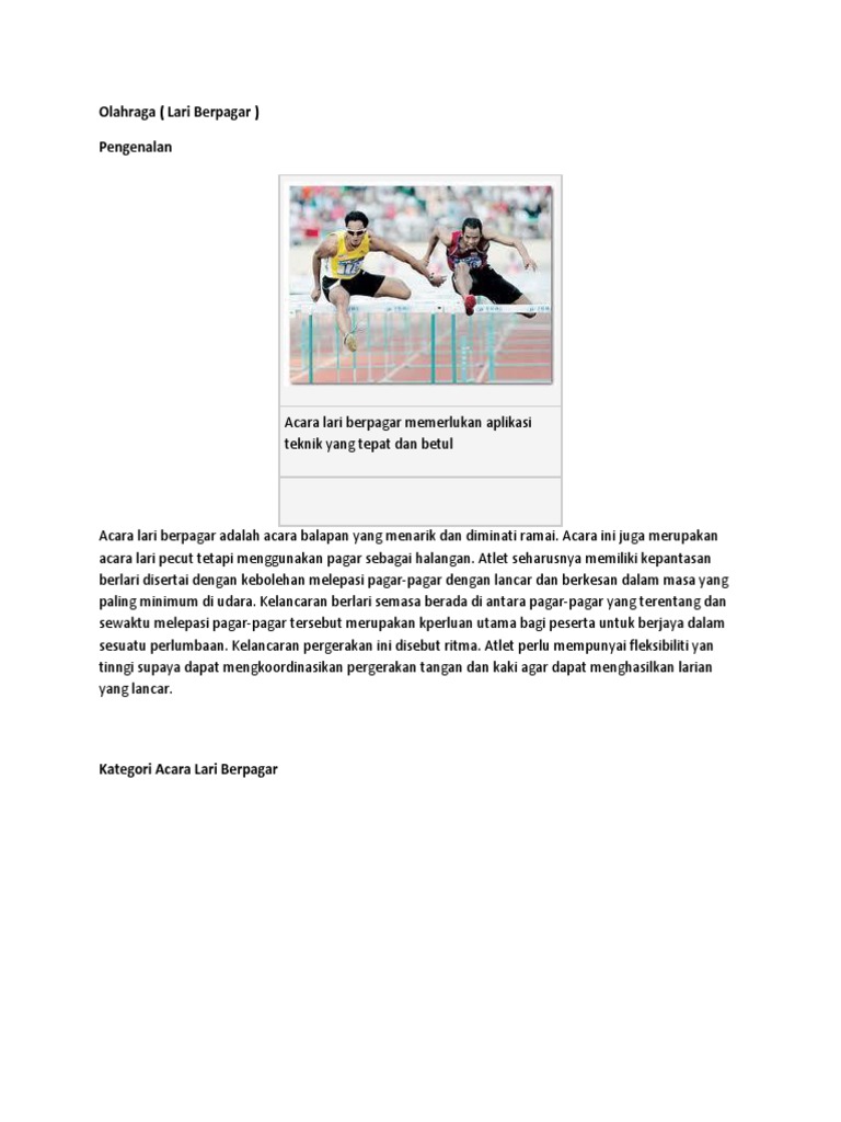 Lari terus ke arah halangan berpagar Kaedah lari berpagar 2. Luruskan kaki hadapan sambil condongkan sedikit badan hingga rapat dengan kaki hadapan 4. Need to translate lari berhalangan from Malay.